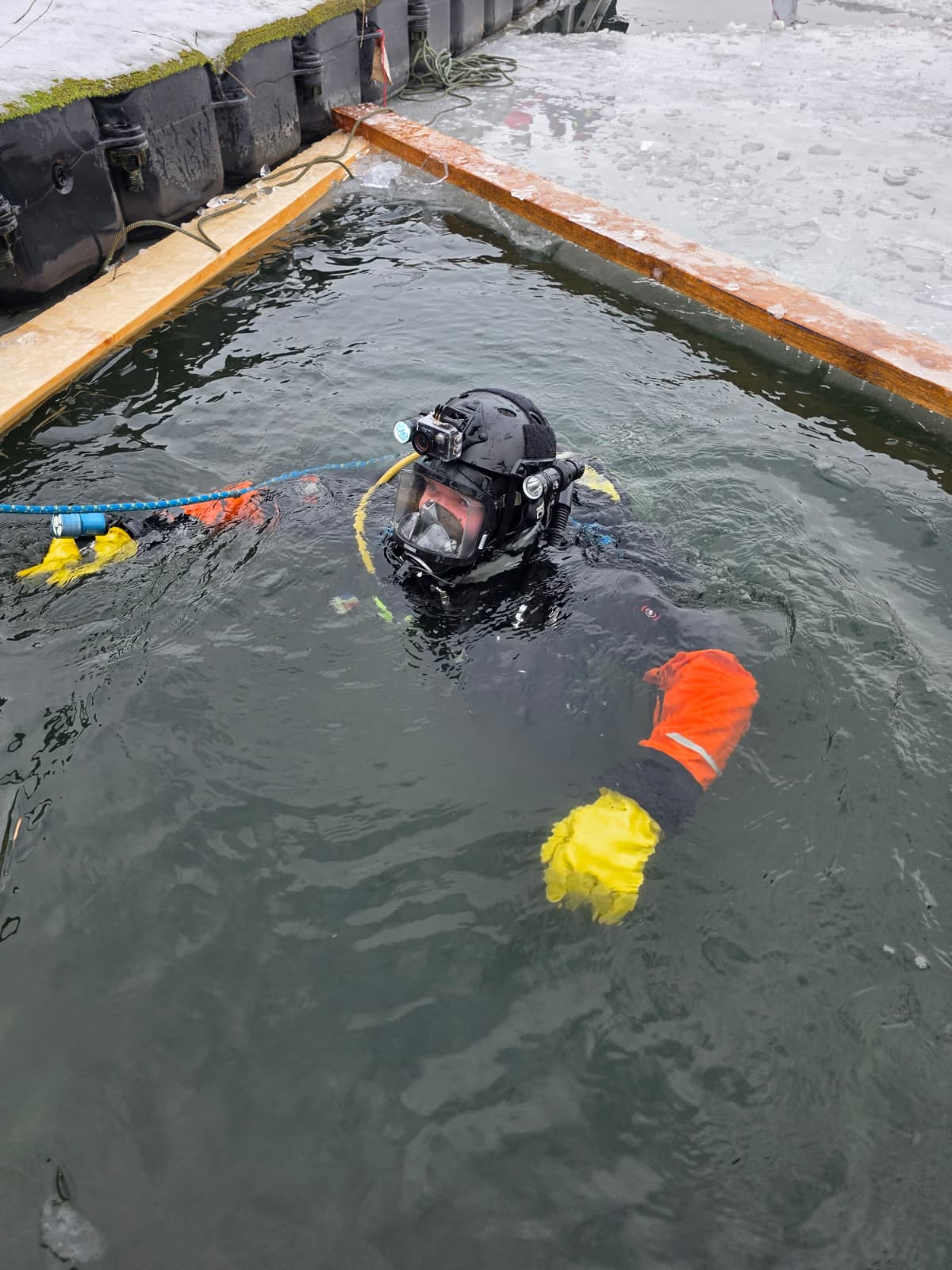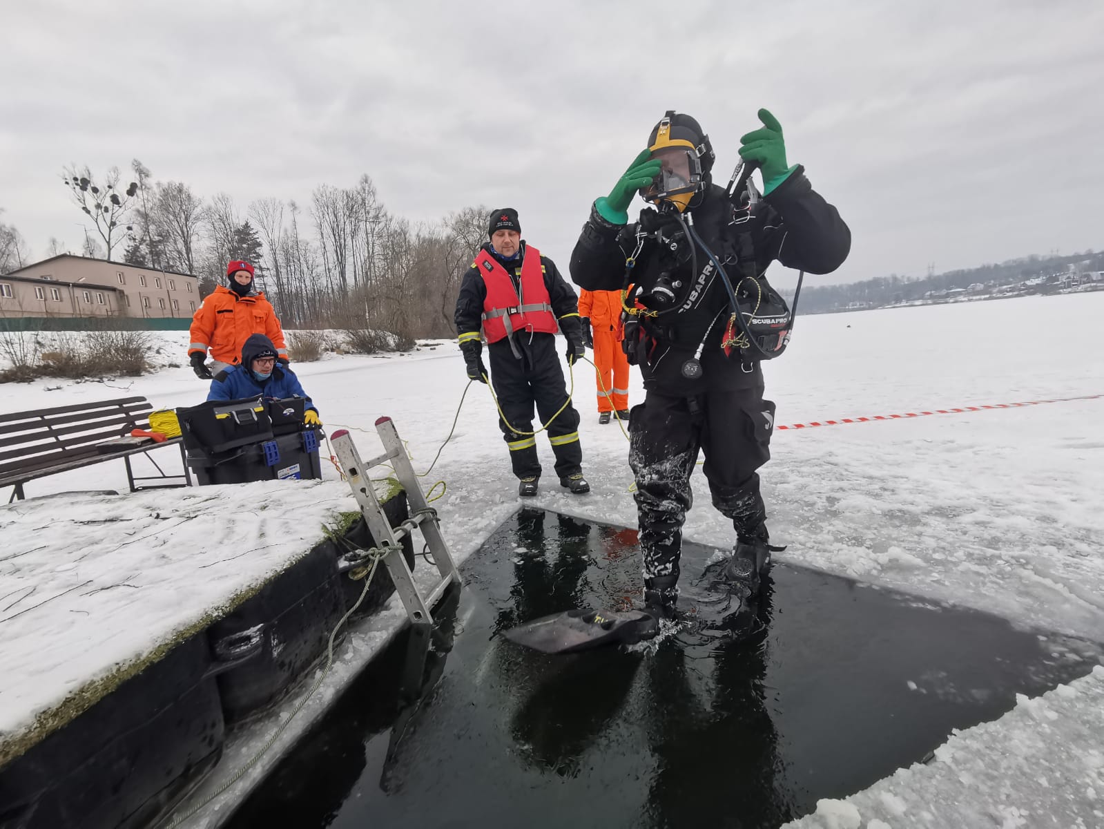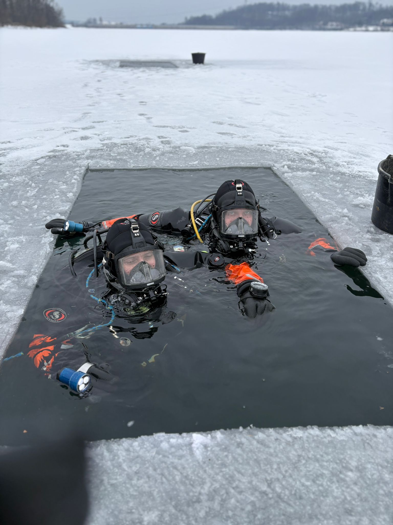 Zimní výcvik báňských potápěčů HBZS Ostrava – potápění pod ledem